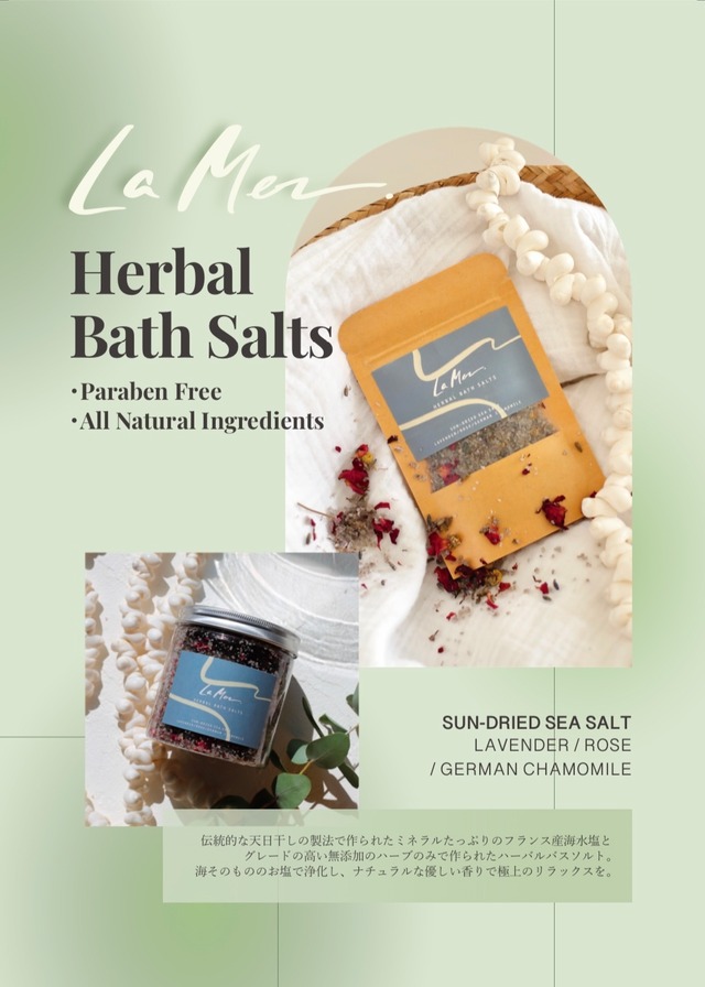伝統的な天日干しの製法で作られた ミネラルたっぷりのフランス産海水塩と グレードの高い無添加のハーブのみで 作られたオールナチュラルな ハーバルバスソルトです♡ 海そのもののお塩で浄化し、 ナチュラルな優しい香りで 極上のリラックスを堪能できます♡ ご自身へのご褒美だけでなく プレゼントとしても大変オススメです! ぜひお試しください♡ ※1回使用量目安:50g ※以外商品つきましては、 取り寄せとなるためお渡しまでに日数頂戴致します。予めご了承ください。 ◆対象商品◆ ・500gパウチ ・550gコンテナ ・750gコンテナ